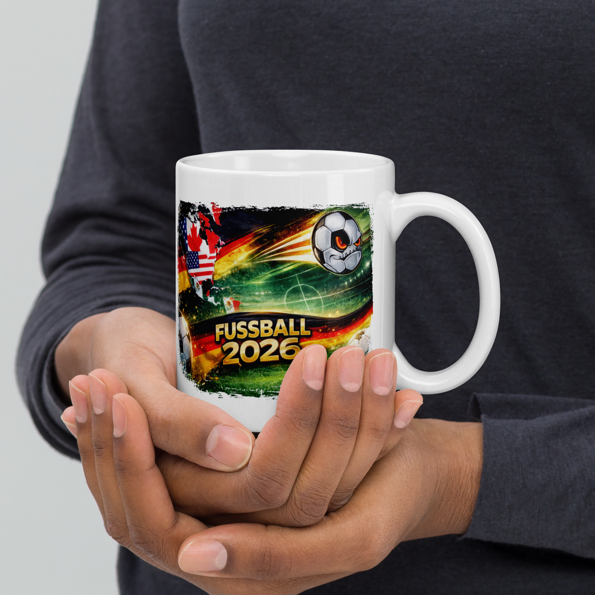 Das moderne Motiv verbindet Fußball-Atmosphäre mit internationalen Einflüssen aus Amerika, Kanada und Deutschland. So wird aus Kaffee, Tee oder Kakao ein Ritual, das an Fanabende, Public Viewing und die Saison 2026 erinnert. Die Tasse liegt angenehm in der Hand und passt genauso gut ins Büro wie nach Hause auf den Couchtisch.