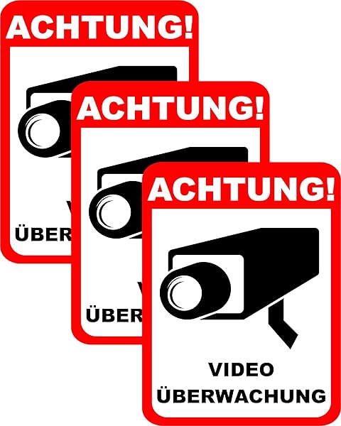 Mit dem Achtung Videoüberwachung Aufkleber setzen Sie einen klaren Hinweis auf überwachte Bereiche. Dieses 3er Set im Format 13×10 cm eignet sich für Innen- und Außenbereiche und ist leicht anzubringen. Die Aufkleber bestehen aus Premiumfolie mit schutzlaminierter Oberfläche, sind wetterfest sowie UV- und temperaturbeständig und bieten dadurch langanhaltende Sichtbarkeit.