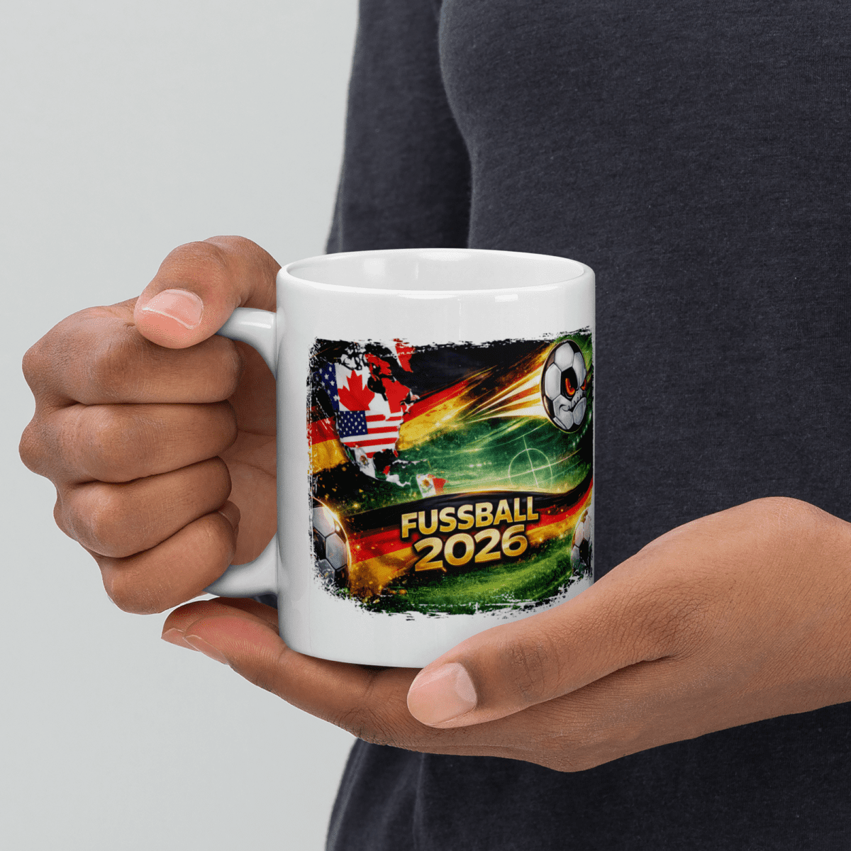 Das moderne Motiv verbindet Fußball-Atmosphäre mit internationalen Einflüssen aus Amerika, Kanada und Deutschland. So wird aus Kaffee, Tee oder Kakao ein Ritual, das an Fanabende, Public Viewing und die Saison 2026 erinnert. Die Tasse liegt angenehm in der Hand und passt genauso gut ins Büro wie nach Hause auf den Couchtisch.