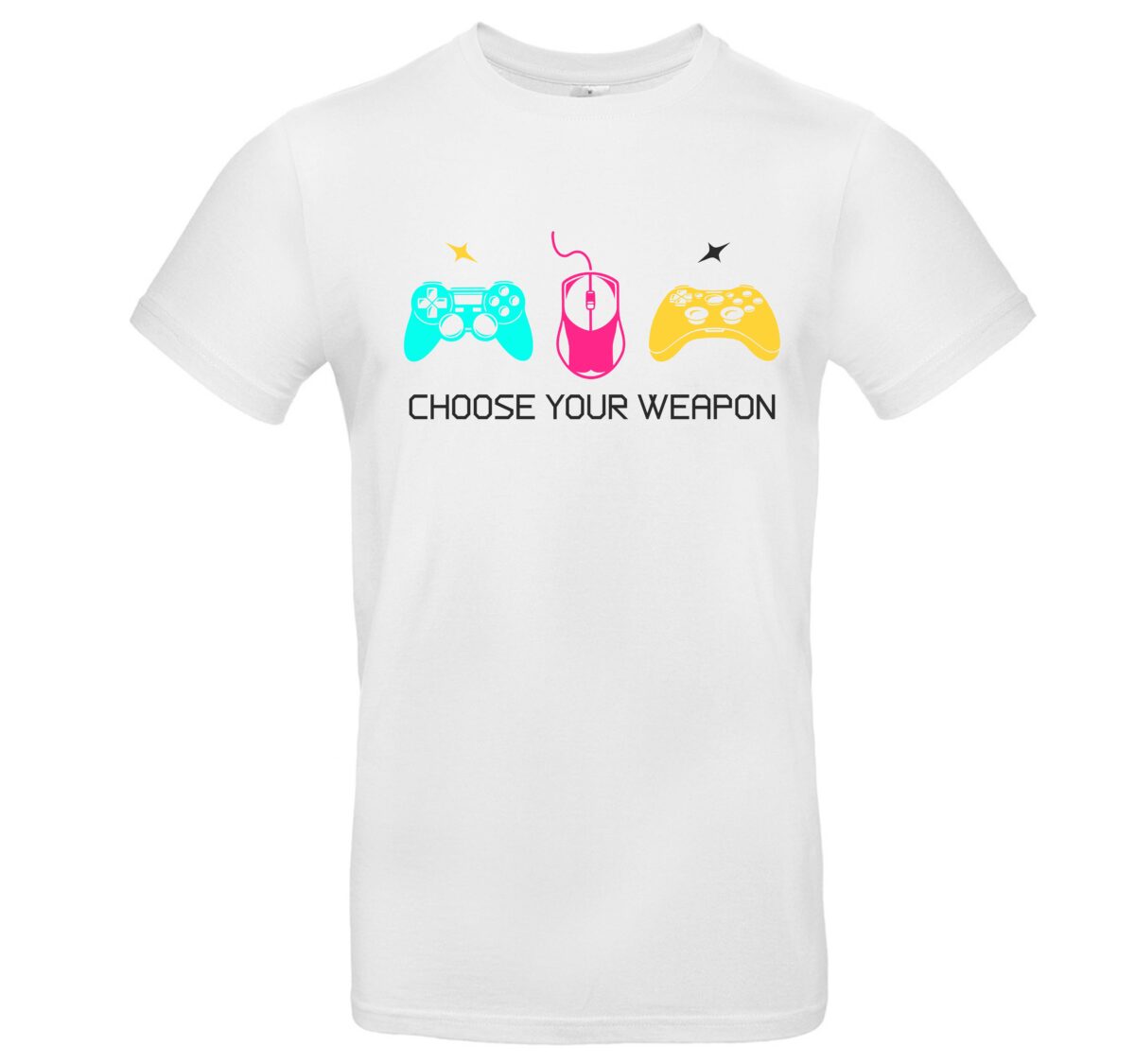Dieses Gamer T-Shirt ist das ultimative Must-Have für alle Zocker und Gaming-Fans. Mit dem coolen „Choose Your Weapon“-Spruch und den stylischen Gaming-Elementen wie Controller und Maus setzt du ein Statement für deine Leidenschaft. Das T-Shirt besteht aus hochwertiger, weicher Baumwolle, die ein angenehmes Tragegefühl bietet – ideal für lange Gaming-Sessions oder als lässiges Alltagsoutfit.
