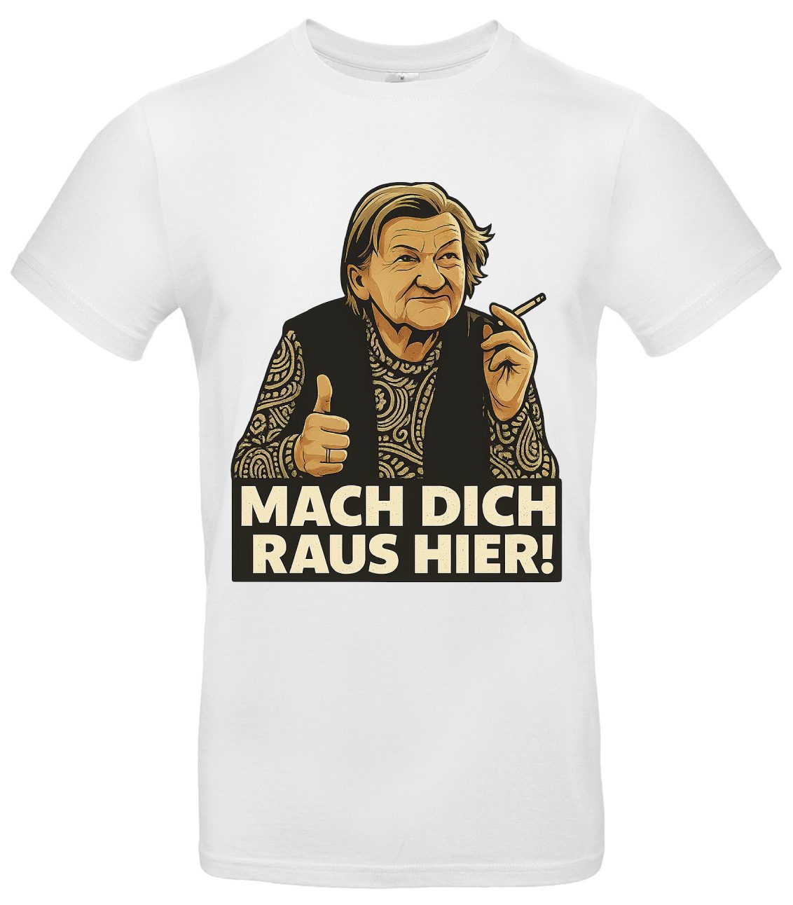 Ob für Freunde, Sammler oder einfach für dich selbst: Hol dir jetzt dein Statement-Shirt und sag es mit einem Grinsen laut mit: Mach dich raus hier. Jetzt bestellen und den Kult tragen.