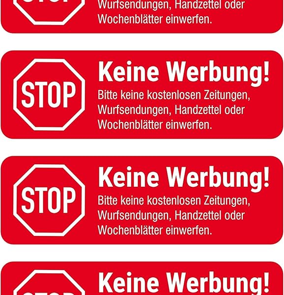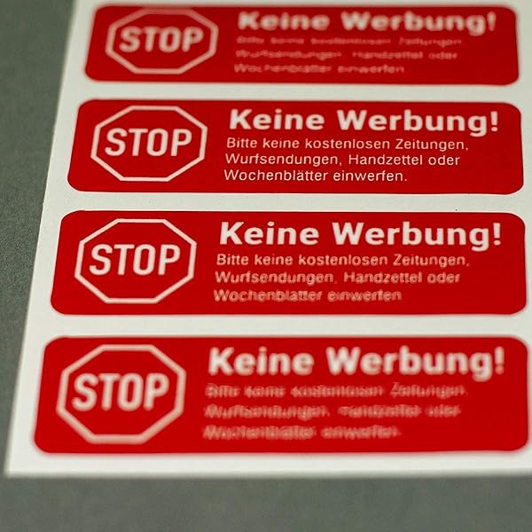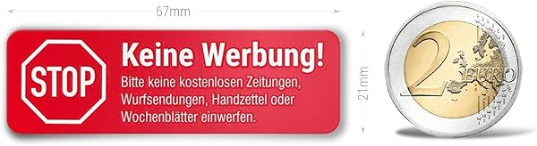 Dank der selbstklebenden Rückseite haften sie zuverlässig auf glatten und leicht strukturierten Flächen wie Glas, Metall oder Kunststoff. Die dezente Größe von 2,3 x 7 cm bewahrt die Lesbarkeit ohne dominant zu wirken. Geeignet für private wie gewerbliche Einsatzorte, reduzieren sie unerwünschte Werbung und helfen, Papiermüll zu vermeiden.