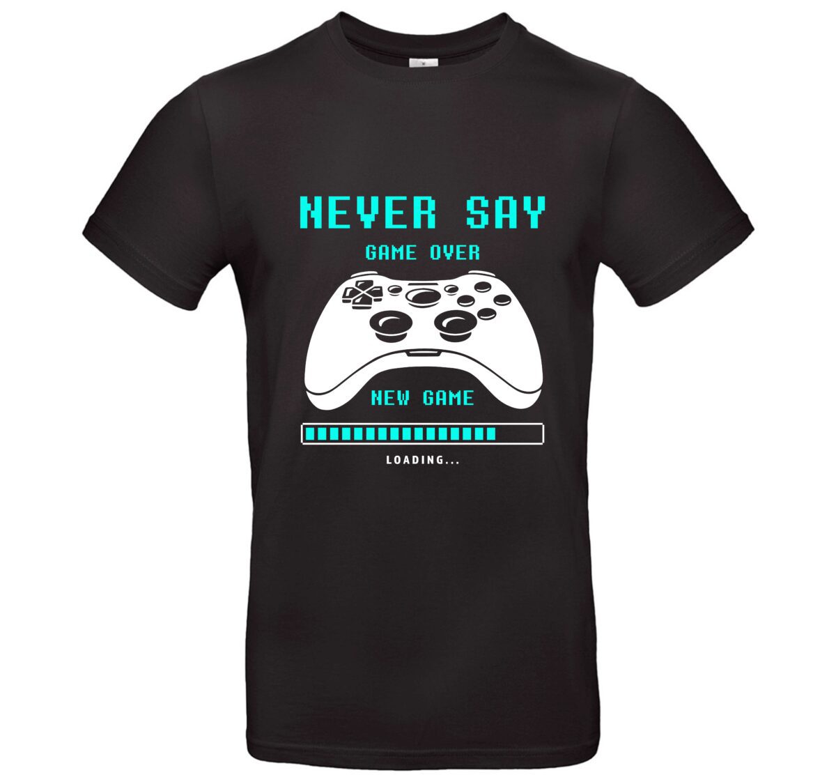 Das Gamer T-Shirt Never Say Game Over ist dein Statement für lange Nächte, knappe Matches und echte Leidenschaft. Mit dem markanten Spruch und dem stylischen Controller-Motiv zeigst du sofort, wofür du stehst: Gaming ist mehr als ein Hobby.