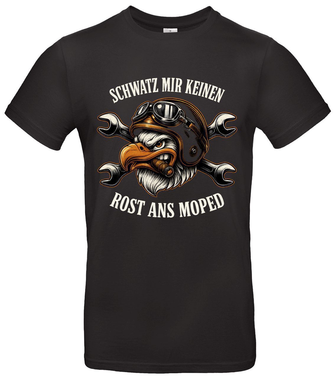 Das Schwatz mir keinen Rost ans Mopded T-Shirt ist das ideale Shirt für Motorradfans, die lieber den Motor sprechen lassen als lange Diskussionen zu führen. Mit seinem humorvollen Spruch und dem coolen Retro-Look setzt du ein klares Zeichen auf Tour, am Stammtisch oder in der Garage.