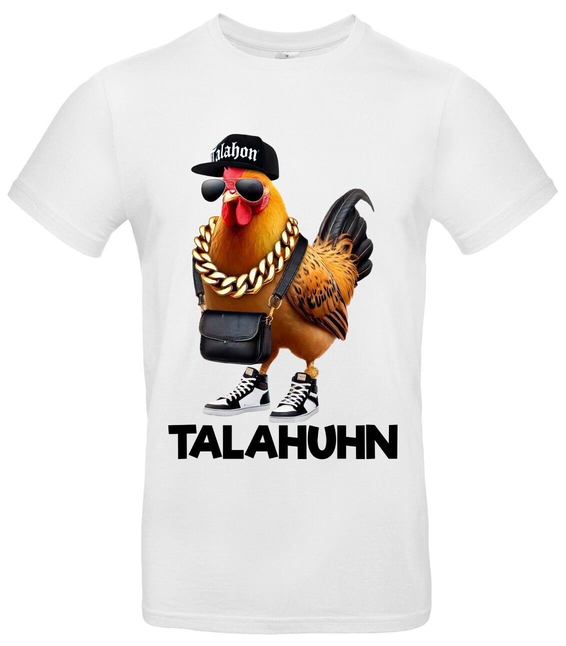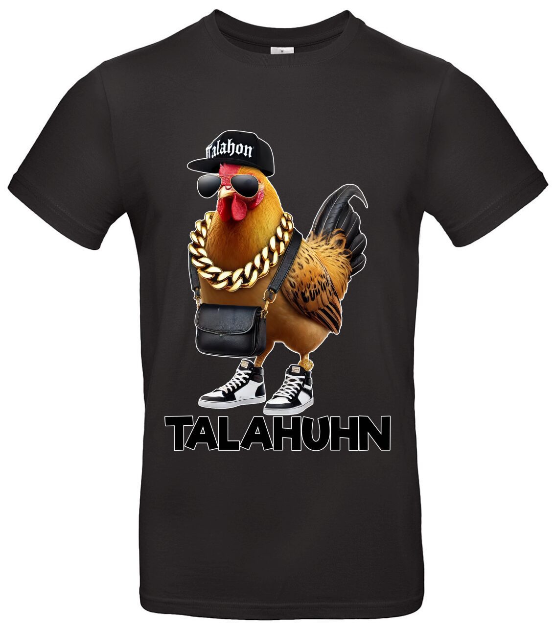 - Design: Auffälliger Print des Talahuhn Meme T-Shirt als Blickfang