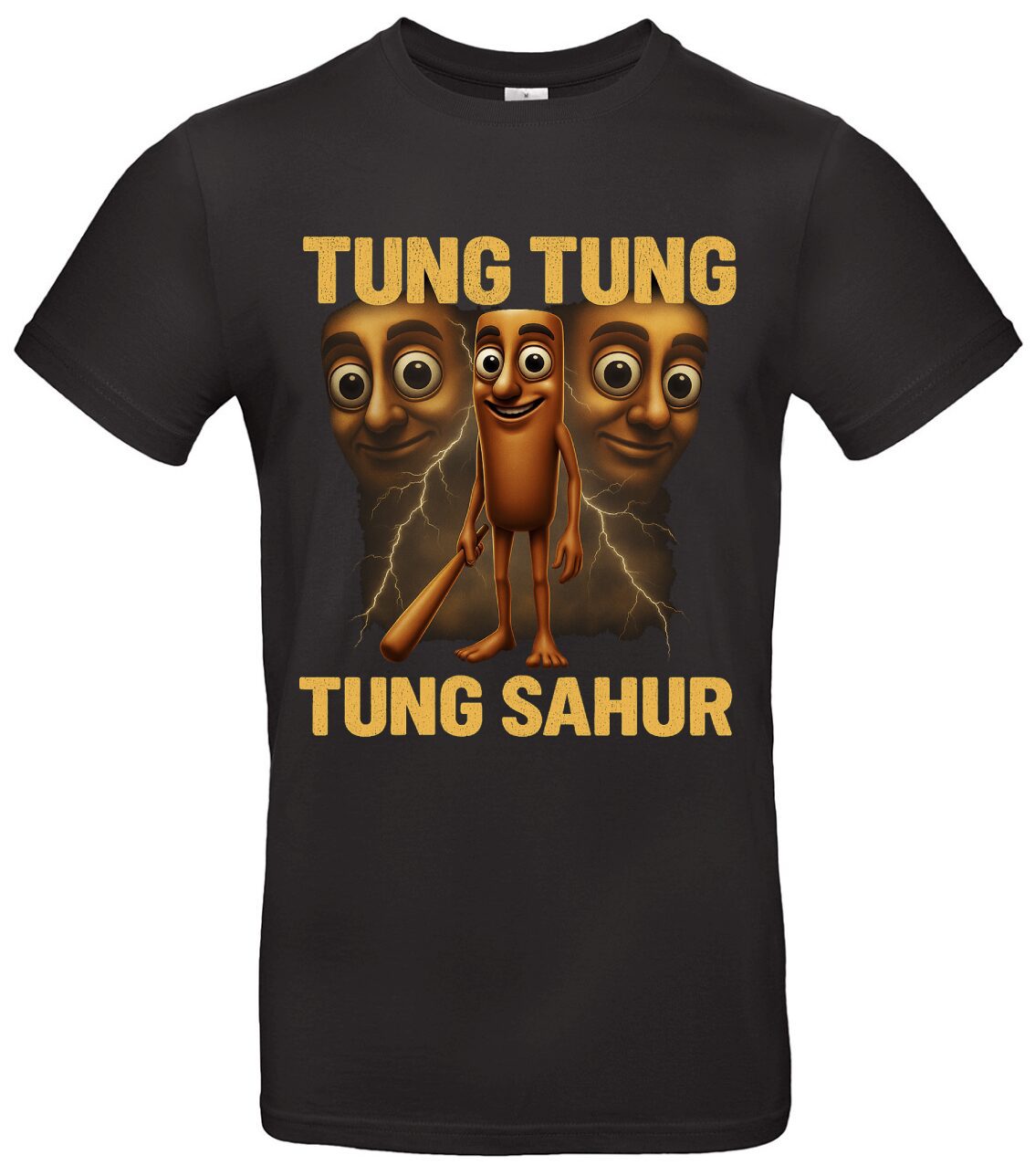 Inspiriert vom indonesischen Sahur Hype, der 2025 durch Creator wie @noxaasht erneut Wellen schlug, verbindet das Motiv den typischen „Tung Tung Tung“ Rhythmus mit der ikonisch-gruseligen Sahur-Figur. Ob beim Sahur-Frühstück, in TikTok Challenges oder als Gesprächsstarter im Alltag: Der Look sitzt sofort. Der angenehme Baumwoll-Tragekomfort sorgt dafür, dass du es nicht nur feierst, sondern auch gern trägst. Der langlebige Druck bleibt auch nach vielen Wäschen klar und stark.